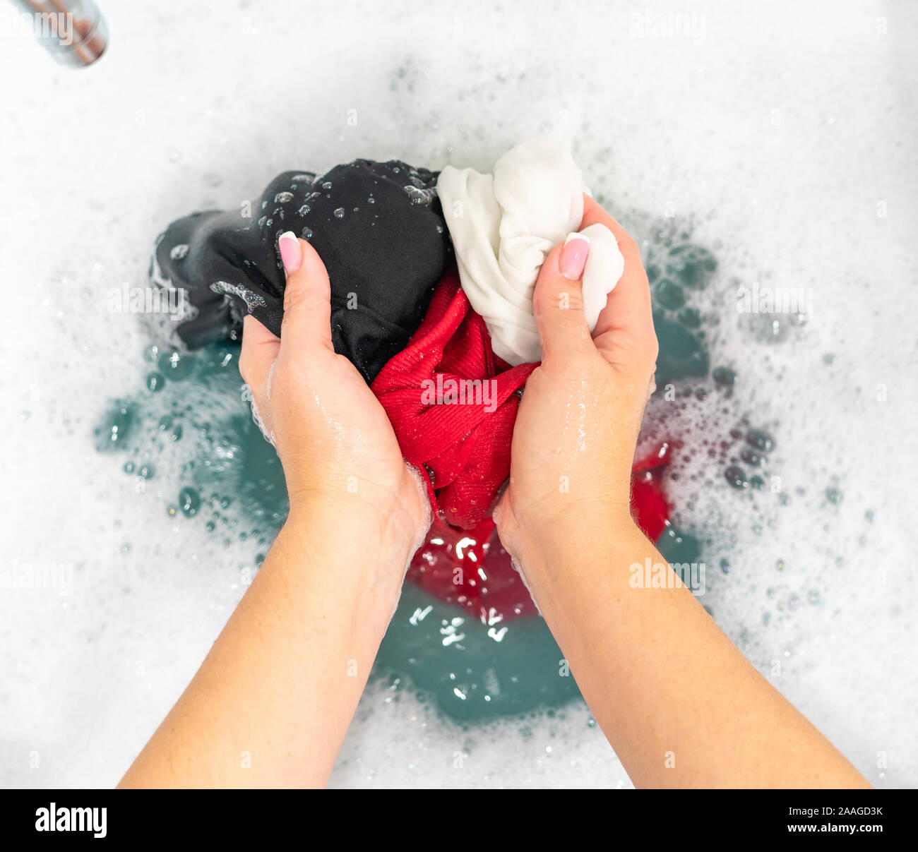 Hand Washing Clothes Images Stock Photos Vectors Shutterstock from image.shutterstock.com Choose the cycle that's appropriate for the clothes you're brightening. Colored clothing, on the other hand, is best washed in cold water in order to achieve the same effect. In contrast, you could opt for using hot water to wash your laundry. For best results, limit the number of items to a small load (about 1 to 4 items). The first one is soaking the clothes in the cold water. Do not wash coloured and dark clothes in warm/ hot water. In some ways, washing colored clothes is similar to washing dark clothes. Mix the product with water according to package directions, and then soak, rinse, and launder the clothing.